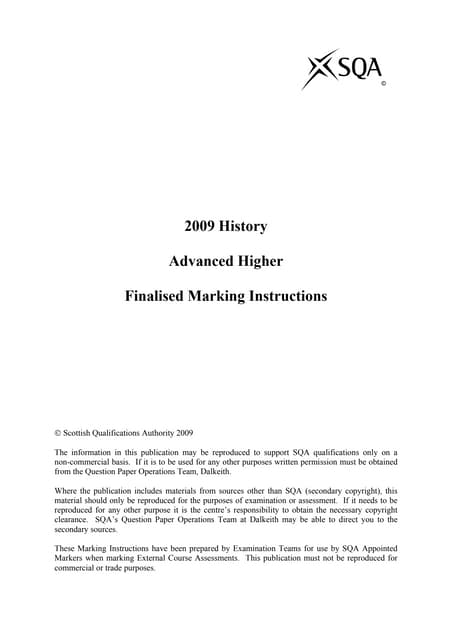 Advanced Higher History Exam 2009 Marking Instructions Pdf